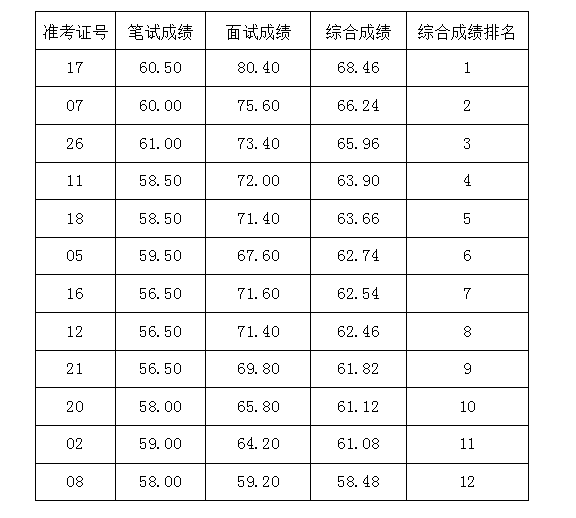 綜合成績排名前四的應(yīng)聘人員將進(jìn)入考察程序。