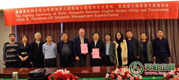 應(yīng)天柱山聯(lián)合國(guó)教科文組織世界地質(zhì)公園邀請(qǐng),韓國(guó)聯(lián)合國(guó)教科文組織世界地質(zhì)公園理事會(huì)成員李洙宰先生和英國(guó)里維耶拉聯(lián)合國(guó)教科文組織世界地質(zhì)公園主席尼克.帕先生于4月12-13日,到天柱山地質(zhì)公園考察指導(dǎo)公園建設(shè)管理工作??疾炱陂g,市委常委、天管會(huì)副主任涂高生代表天柱山,與英國(guó)里維耶拉聯(lián)合國(guó)教科文組織世界地質(zhì)公園簽訂了姊妹公園協(xié)議,兩家公園將加強(qiáng)科研、教育、經(jīng)濟(jì)和社會(huì)合作,增進(jìn)文化的相互了解和交流,實(shí)現(xiàn)國(guó)際間有效的相互推廣。