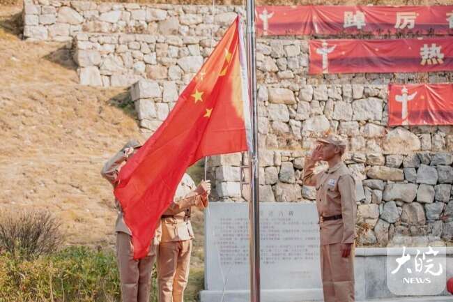 大皖新聞訊 10月1日上午,抗美援朝老兵及其子女、港澳臺同胞代表以及天柱山游客、志愿者在天柱山愛園舉行。伴隨著莊嚴(yán)雄壯的國歌,鮮艷的五星紅旗緩緩升起,在湛藍(lán)的天空上高高飄揚,全體人員面向國旗莊嚴(yán)敬禮。他們凝視著鮮紅的國旗,表達(dá)最崇高的敬意,在“祖國母親 我想對您說”大型留言板上向祖國母親深情告白。