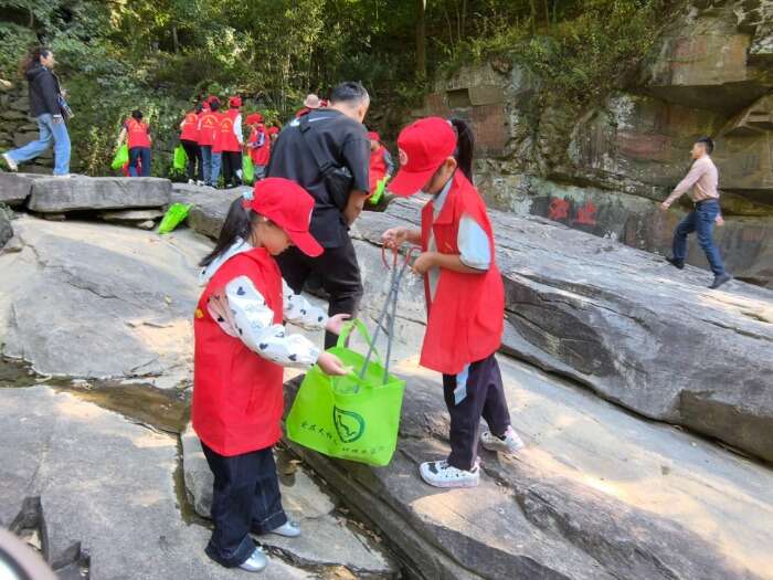 山谷流泉景區(qū)里,景區(qū)志愿者為招募而來(lái)的小學(xué)生志愿者穿上紅色小馬甲,戴上小紅帽,送上國(guó)旗貼紙和小國(guó)旗,并帶上火鉗、方便袋等小工具在景區(qū)拾撿垃圾,參與古箏學(xué)習(xí)、弈棋、朗誦古詩(shī)等豐富多彩的互動(dòng)志愿活動(dòng),一抹抹“中國(guó)紅”流動(dòng)在景區(qū)里,大家都感受到奉獻(xiàn)的快樂(lè),一粒粒“愛”的種子悄然播種在小志愿者的心田。與此同時(shí),志愿者們還在山谷流泉文化園、天柱山地質(zhì)公園博物館開展免費(fèi)講解、宣傳天柱山歷史文化、天柱山故事等服務(wù)。